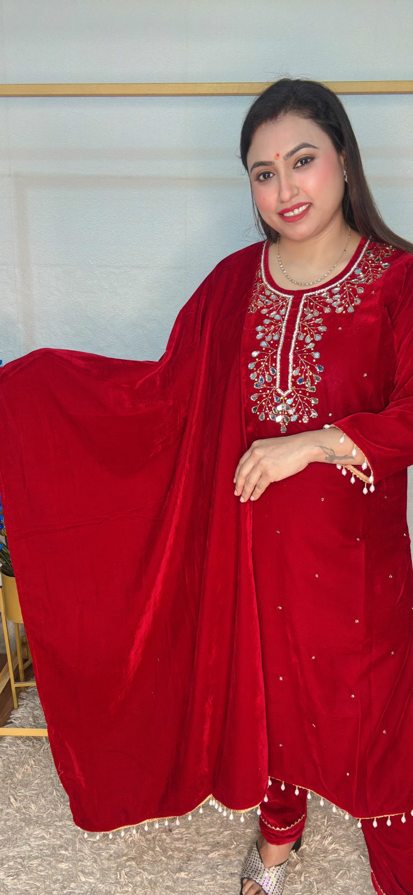 Sleeves Cut Work with Banarasi Dupatta Suit Set