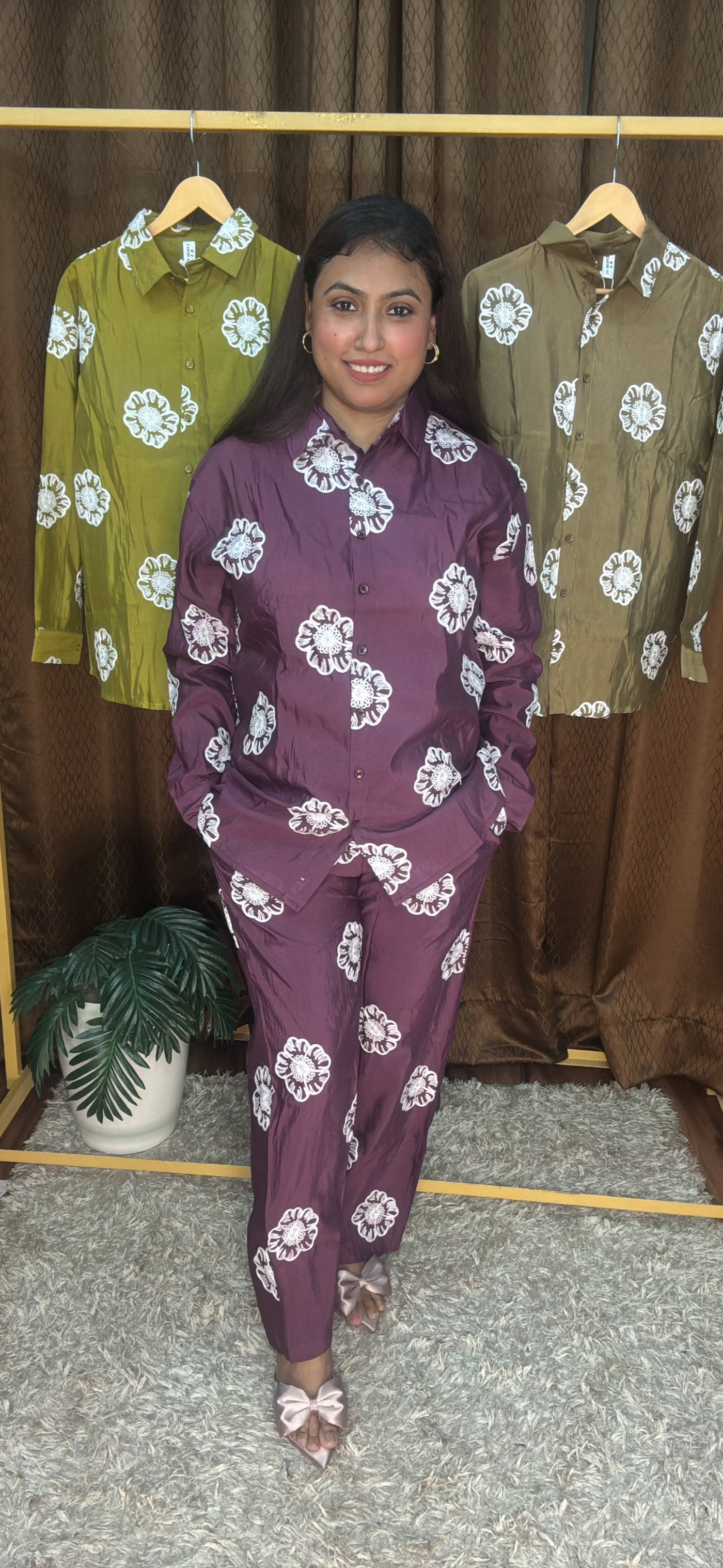 Round Flower Thread Work Cord Set - Free Size Till -44 / Wine / Cotton silk