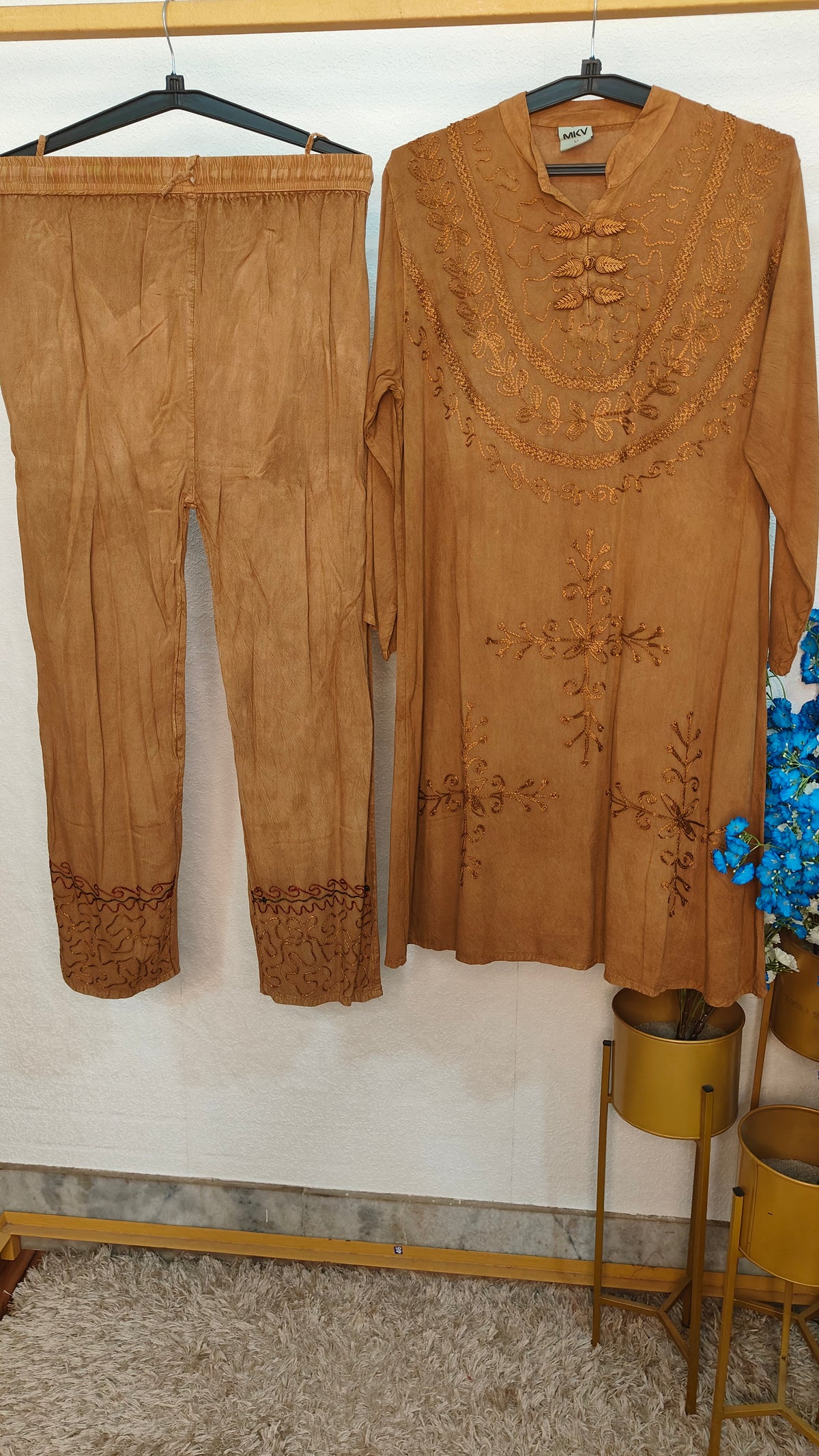 Mirchi Thread Work Cord Set - Free Size Till-40-42-44 / Brown / Rayon Cotton