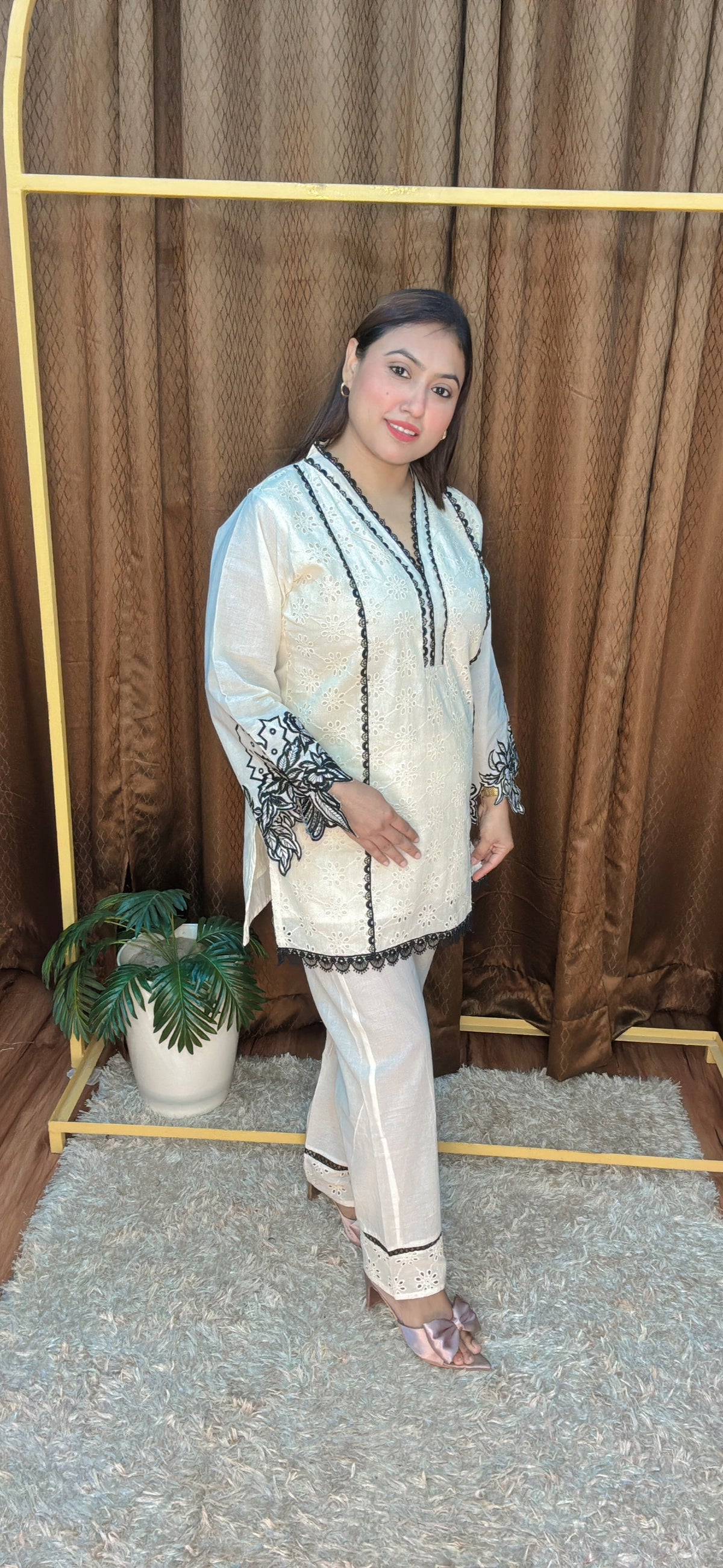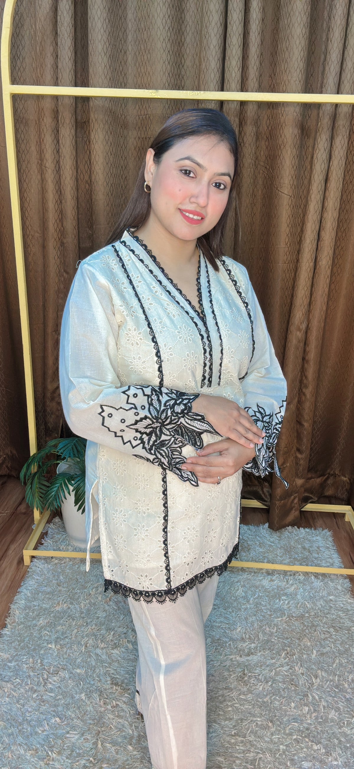 To keep your garment looking its best, we recommend gentle care. Machine wash cold with like colors or hand wash when needed. Use mild detergent and avoid bleach. Tumble dry on low or hang to dry for best results. Cool iron if needed, and avoid ironing directly on embellishments or prints. Always check the care label inside the garment for specific instructions.