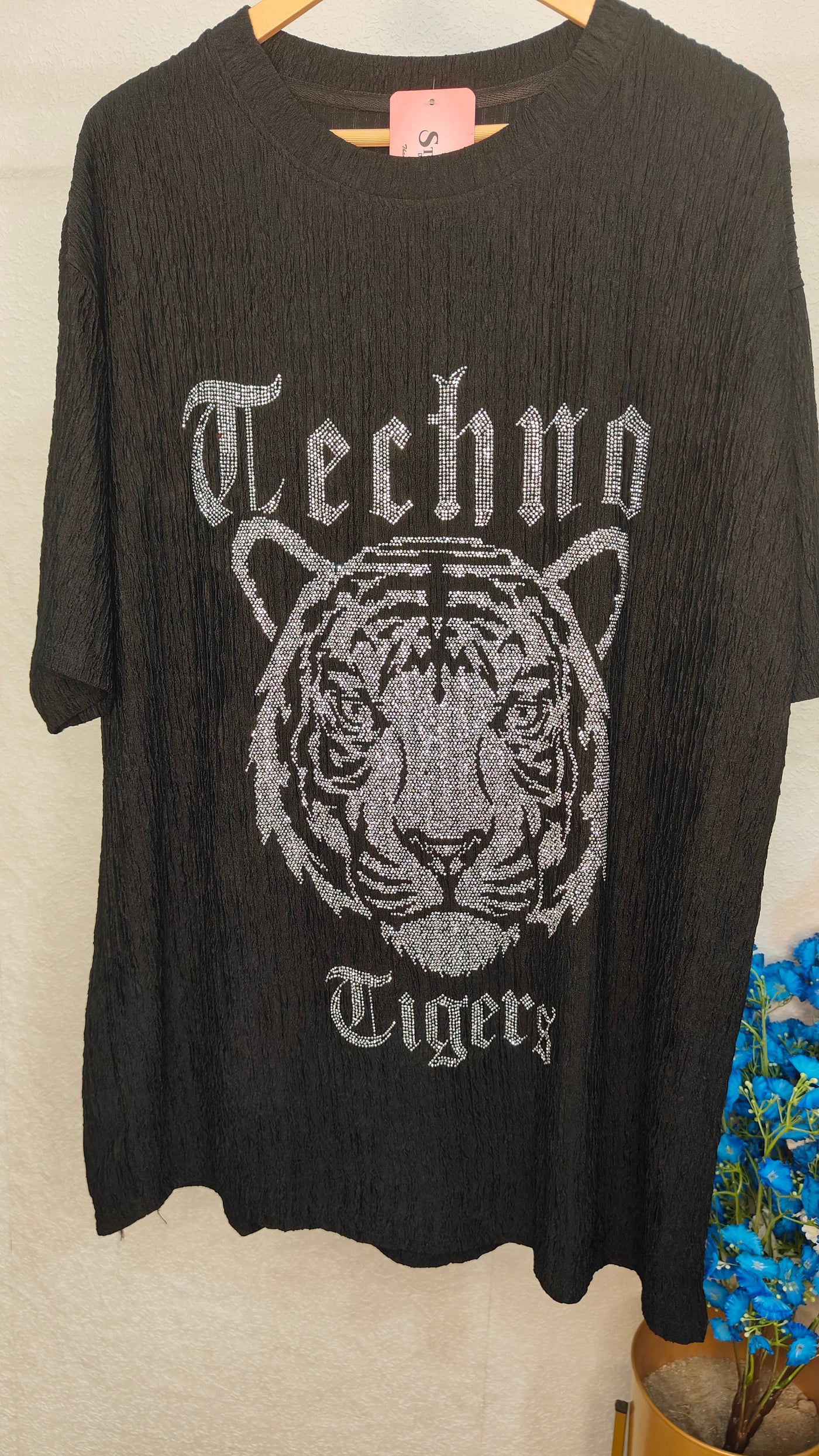 Tiger Servoski Wrinkle Fabric Long T Shirt - Free Size Till-44-46-48-50-52 / Black / Wrinkle