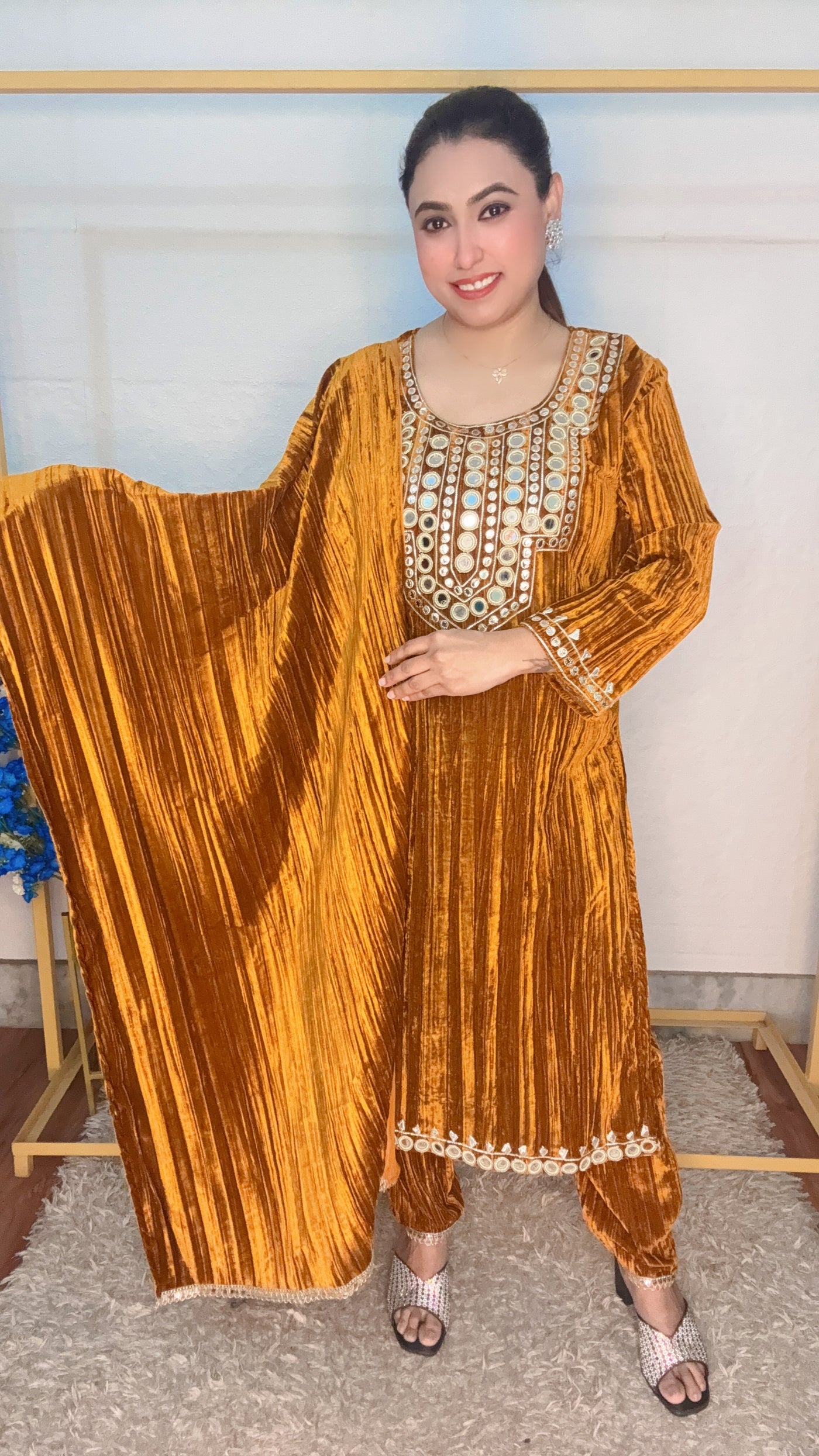 Crush Velvet Mirror neck Kurti set